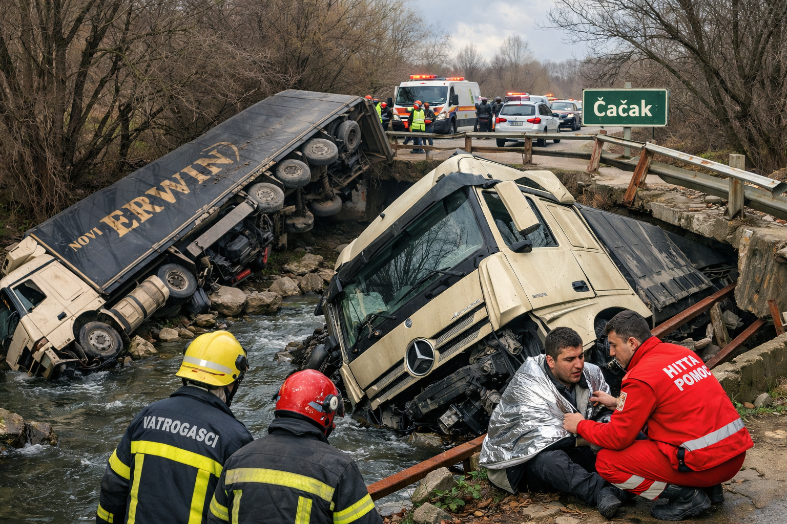 ČAČAK – Na starom magistralnom putu između Čačak i Kraljevo, u naselju Viljuša, danas je došlo do teške saobraćajne nezgode kada je šleper sletio s kolovoza i završio u riječnom koritu.