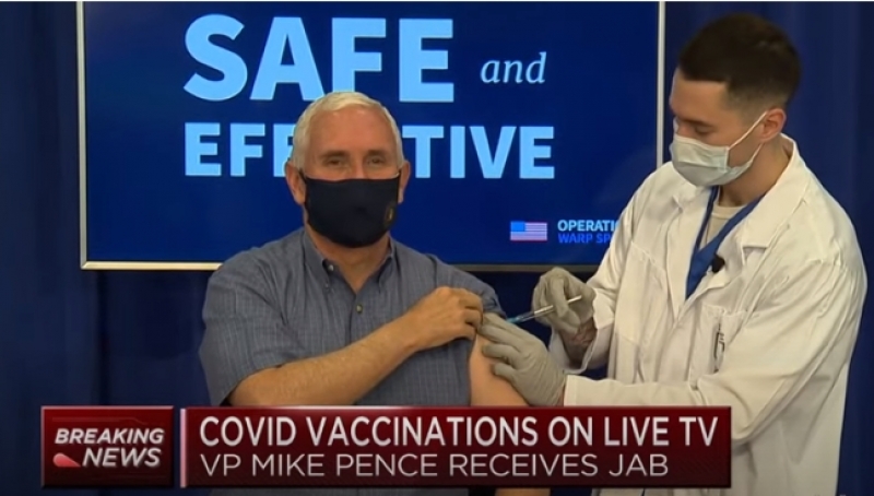Potpredsjednik Mike Pence vakcinisan je u petak protiv COVID-19, u dešavanju koje je uživo prenosila televizija u cilju uvjeravanja Amerikanaca da je vakcina sigurna. On je pohvalio vakcinu kao medicinsko čudo koje bi eventualno moglo suzbiti divljajuću pandemiju koronavirusa.