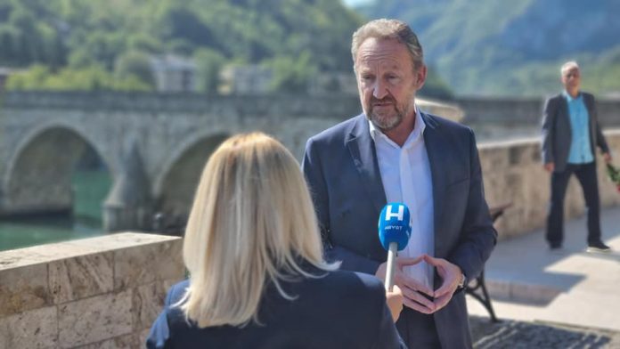Predsjednik Stranke demokratske akcije (SDA) Bakir Izetbegović boravi u posjeti Višegradu.