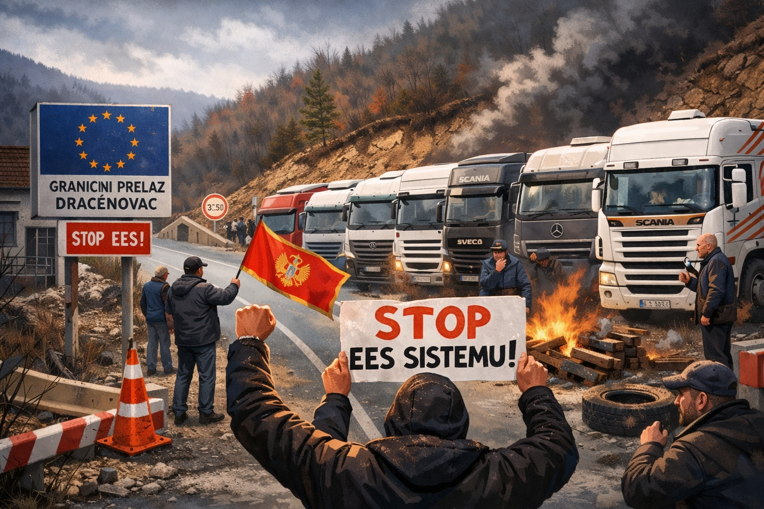 Vozači teretnih vozila iz Srbije, Bosne i Hercegovine, Crne Gore i Sjeverne Makedonije danas su u podne započeli koordinisane blokade graničnih prelaza prema Evropskoj uniji, izražavajući nezadovoljstvo zbog uvođenja Entry/Exit sistema (EES) i ograničenja boravka profesionalnih vozača na teritoriji Šengena.