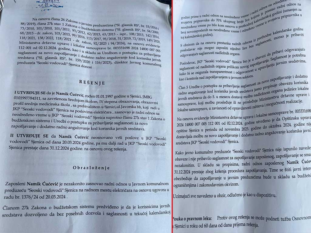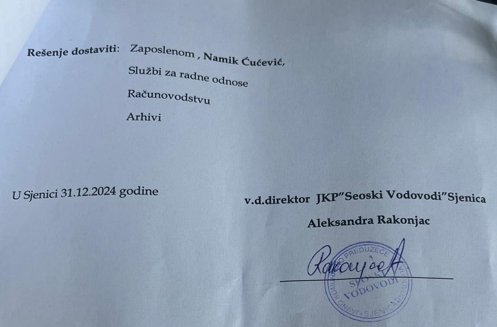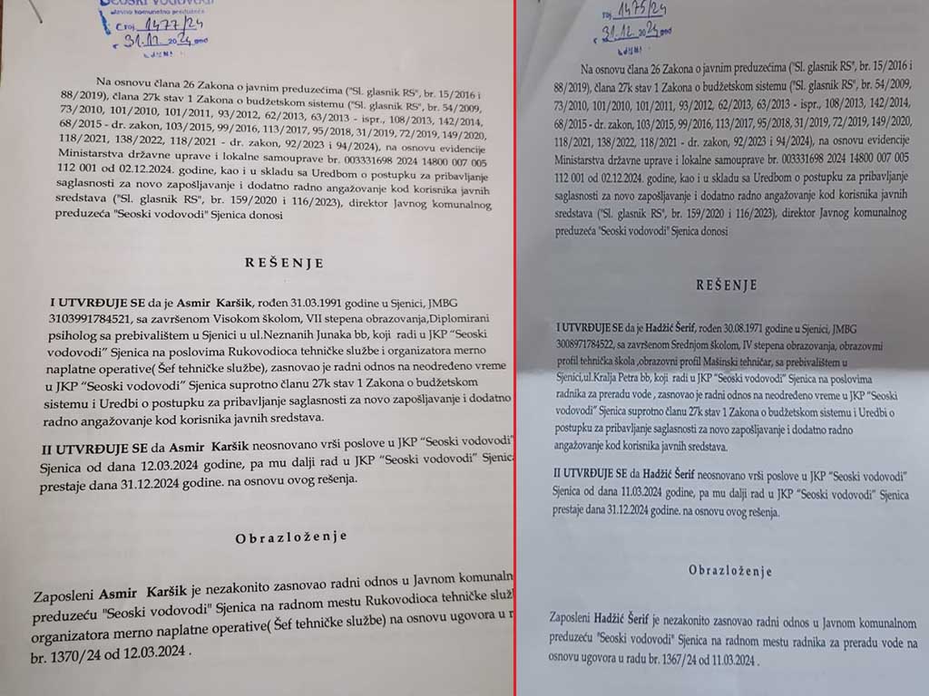 U epicentru skandala našla se odluka o otpuštanju šestoro Bošnjaka zaposlenih u JKP “Seoski Vodovod”, dok se pripadnici drugih nacionalnosti i stranački kadrovi SPP-a očigledno štite. Riječ je o ljudima koji su radili na neodređeno vrijeme, uključujući Asmira Karišika, Namika Čučevića, Merdana Bihorca, Šerifa Hadžića, Nehada Fakića i Amelu Zimonjić. Posebno šokira činjenica da se otkaz priprema i jednoj radnici koja je trenutno na trudničkom bolovanju.