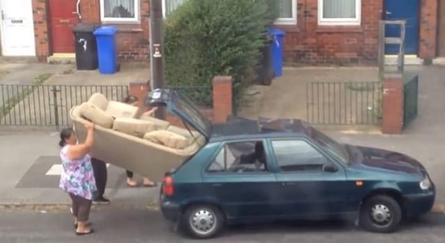 Pravi primjer toga su ovi genijalci koji su pošto poto odlučili strpati jedan golemi komad namještaja u ne baš tako prostrani prtljažnik.
