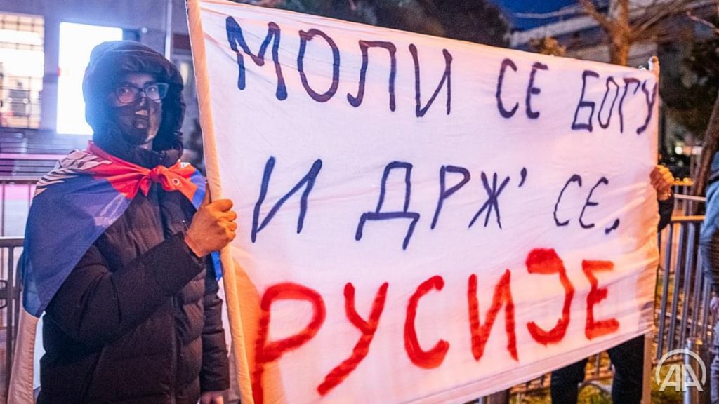 U Podgorici je večeras održan skup podrške Rusiji, na kome se okupilo nekoliko desetina građana, javlja Anadolu Agency (AA).