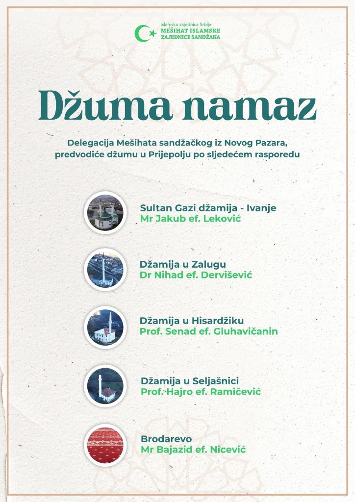 Ostali članovi delegacije Mešihata sandžačkog iz Novog Pazara, predvodiće džumu po sljedećem rasporedu: