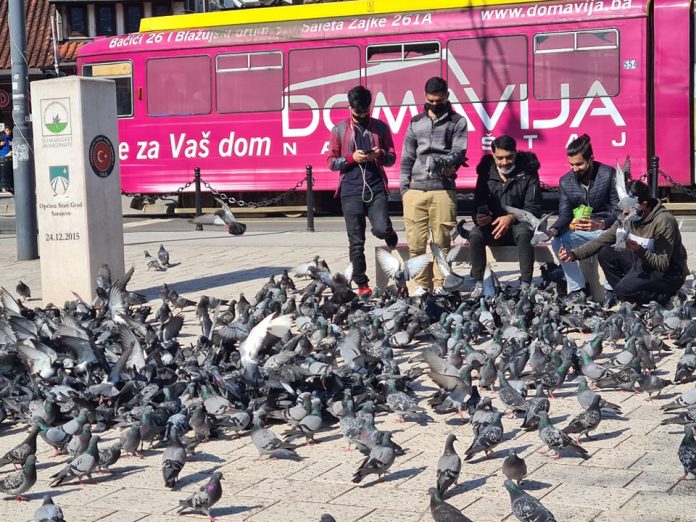 Da mogu govoriti, a ne mogu, sarajevski golubovi ispričali bi kako su gorki zalogaji hljeba koje migranti sa njima dijele. I zalogaji hljeba i zrna kukuruza.