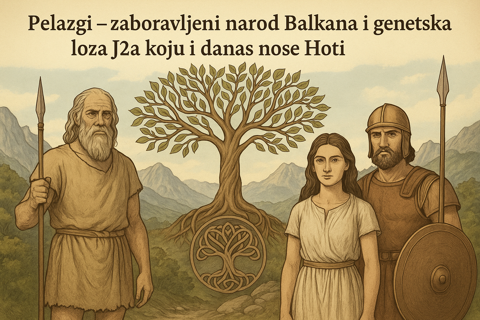U dubinama historije Balkana, mnogo prije nego što su helenska plemena kročila na prostor Egeja, živio je tajanstveni narod – Pelazgi. Antički grčki autori poput Herodota, Tukidida i Homera spominju ih kao autohtoni, predgrčki narod koji je naseljavao obale Egejskog mora, Tesaliju, Epir i čak dijelove današnje Albanije i Crne Gore. Iako su davno nestali iz historijskih zapisa, njihovo genetsko nasljeđe i danas živi u narodima Balkana – posebno kroz haplogrupu J2a.