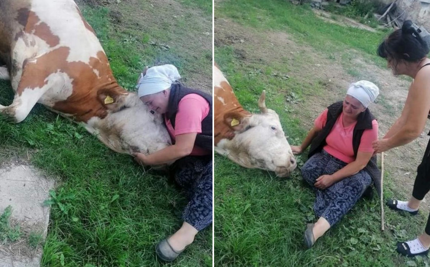 Nakon što je nani Semki Šabić iz sela Šumatac kod Velike Kladuše uginula krava, Hase Šabić iz Cazina objavio je tužne fotografije na kojima nana plače pored krave.