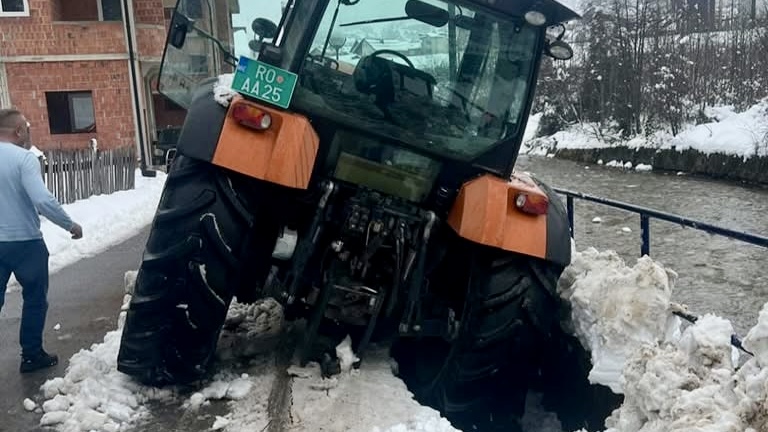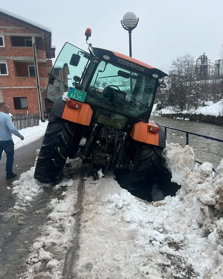 Traktor je izgubio stabilnost i umalo završio u rijeci jer je vozač naišao na dio puta gdje se nalazi rupa koja je samo površno zatrpana snijegom.
