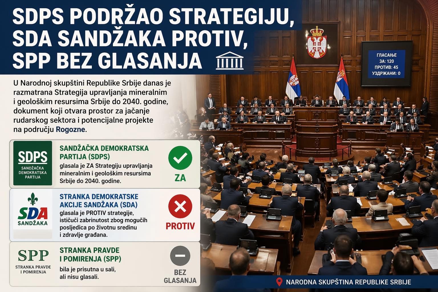 U Narodnoj skupštini Republike Srbije vođena je rasprava o Strategiji upravljanja mineralnim i geološkim resursima Srbije do 2040. godine – dokumentu koji otvara vrata intenzivnijem rudarenju i potencijalnim projektima na području Rogozne. Iako se radi o pitanju koje direktno zadire u životnu sredinu i zdravlje ljudi u Sandžaku, političke reakcije predstavnika ovog kraja pokazale su duboke razlike – ali i ozbiljan nedostatak odgovornosti kod pojedinih.