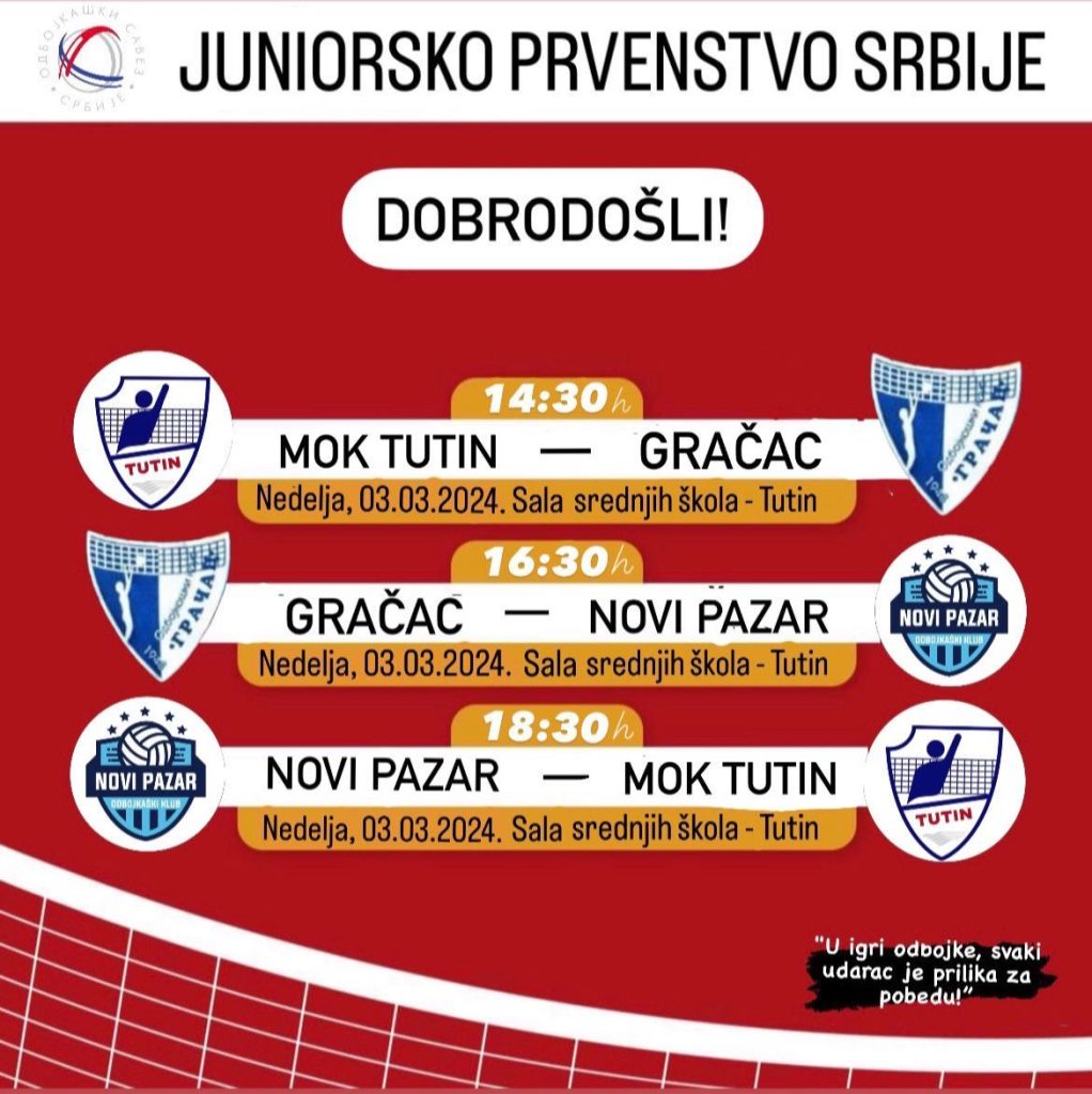 Uprava i odbojkaši MOK Tutin pozivaju sve ljubitelje odbojke i sporta da dođu i pruže im punu podršku protiv ekipa Novog Pazara i Gračaca.
