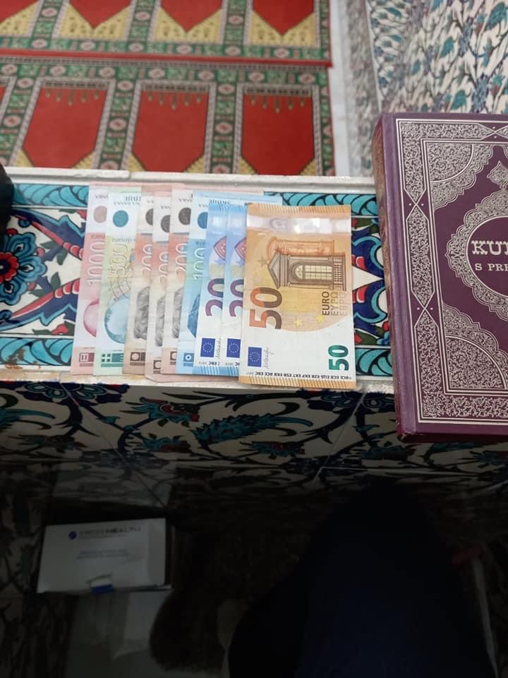 Naime, predsjednik džematskog odbora Ramo Destanović prilikom sređivanja džamije, na mimberu ispod časnog Kur’ana pronašao svotu novca koja je vidljiva na slici ispod teksta.