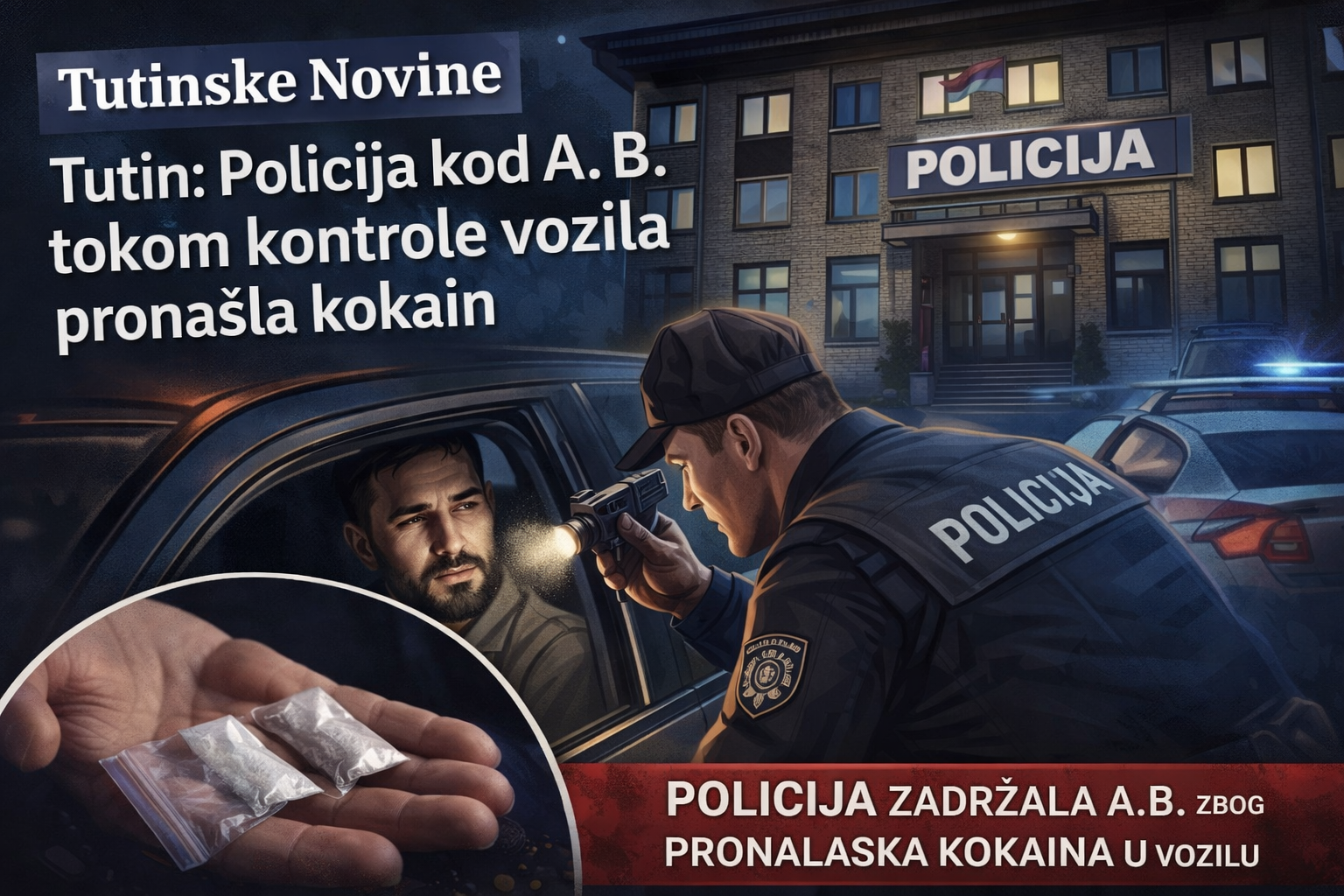 Policijski službenici Policijske stanice Tutin su u ranim jutarnjim satima, oko 01.00 iza ponoći, izvršili kontrolu putničkog vozila u ulici Treće sandžačke brigade, tokom koje je kod vozača pronađena praškasta materija za koju se sumnja da je kokain.