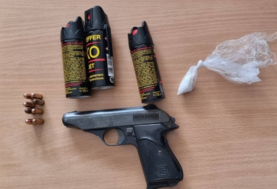 Danas oko 11,20 časova nikšićka policija je u mjestu Bogetići kontrolisala vozilo marke „Mercedes“ nikšićkih registarstkih oznaka u kojem su se nalazili R.B. (30), S.Ž., N.Z. i Lj.Ž. (40)”, navode u saopštenju.Prilikom kontrole kod R.B. je, ističu, pronađeno pakovanje sa sadržajem opojne droge kokain težine oko 10 grama, dok je kod Lj.Ž. pronađen pištolj marke „Bernardelli“ kalibra 7,65mm sa 13 komada municije.”Daljim pregledom vozila pripadnici policije su pronašli šest zaštitnih maski, tri biber spreja, metalni boks, drvenu palicu, 62 metalne kuglice i majice”, navode iz policije.
