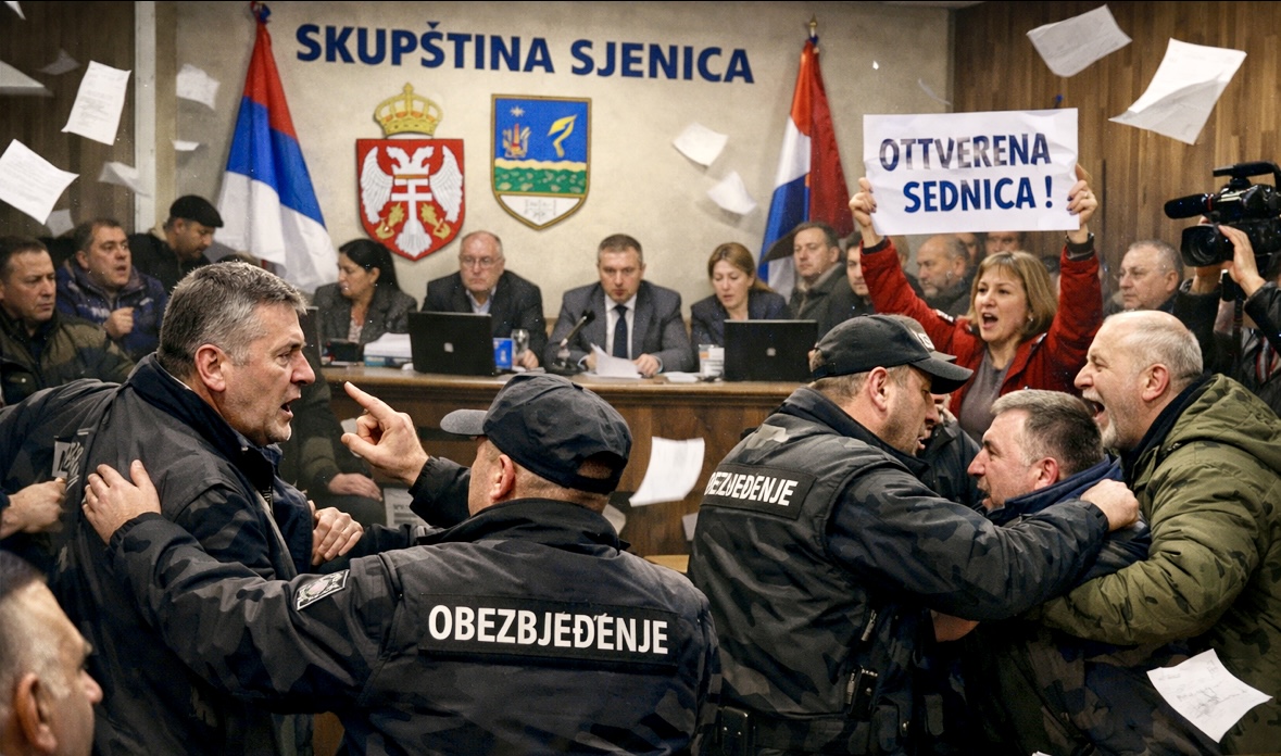 SJENICA – Atmosfera u Skupštini opštine Sjenica i danas je bila izuzetno napeta, uz brojne incidente, glasne rasprave i optužbe opozicije i građana da se sjednica odvija nelegalno.