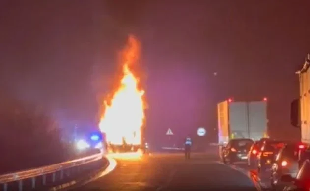 Šleper bosanskohercegovačkih registarskih oznaka (T-20-J-52), gotovo u potpunosti je uništen u večerašnjem požaru na crnogorskoj magistrali.
